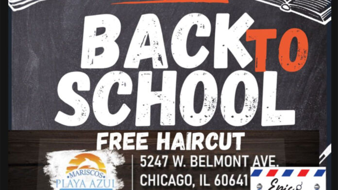 - Sorteo para cortes de cabello gratuitos, regalos, accesorios para la escuela y muchas sorpresas más en el 5247 w Belmont Chicago, Illinois.