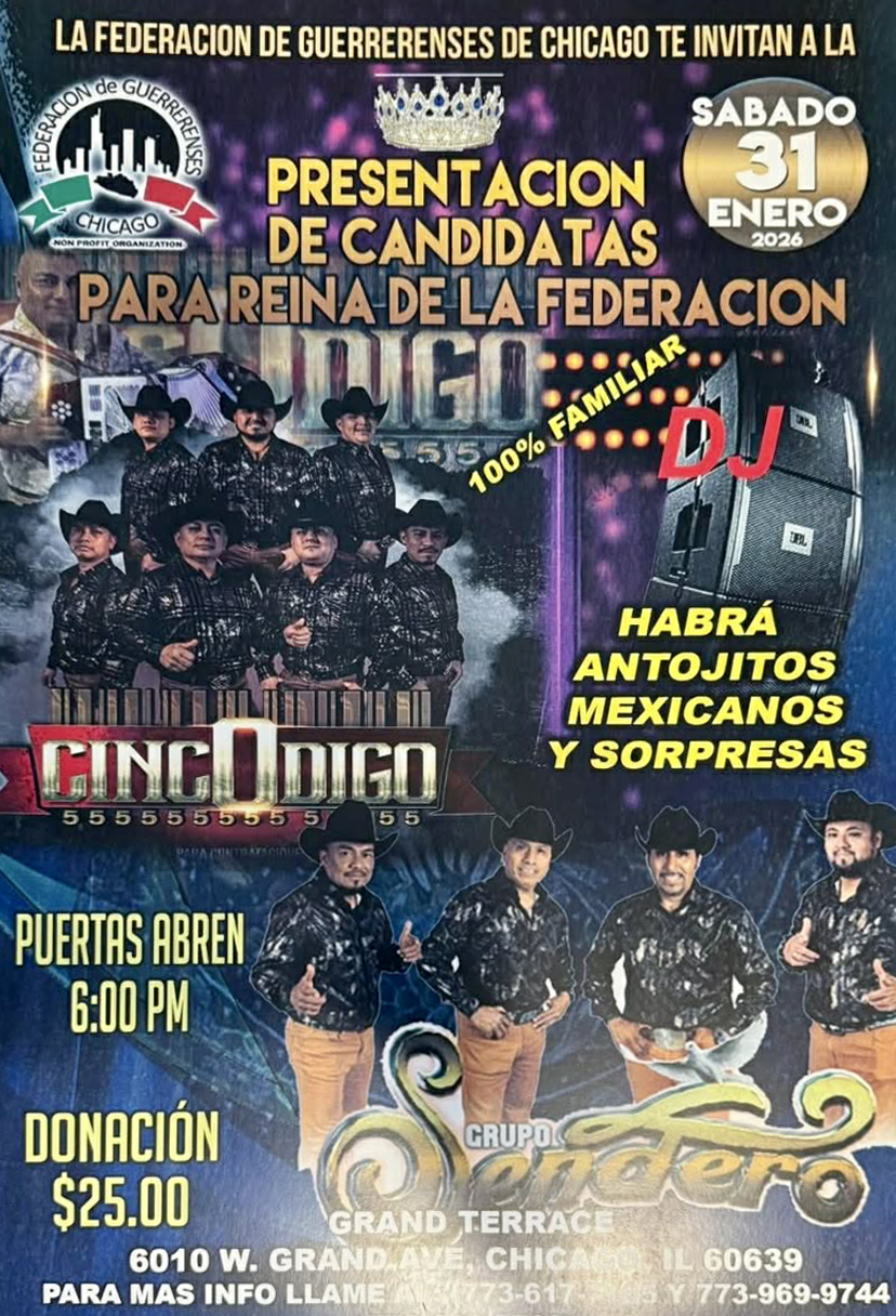 “Con gran entusiasmo les compartimos un adelanto emocionante sobre nuestro próximo certamen para elegir a la Reina de la Federación de Guerrerenses en Chicago 2026-2027. Este año tenemos un grupo excepcional de candidatas, cada una de ellas representando con orgullo a sus pueblos de origen, en nuestro bello estado de Guerrero”, dijo al periódico La Prensa Alfredo Arroyo, directivo de esa organización de migrantes.