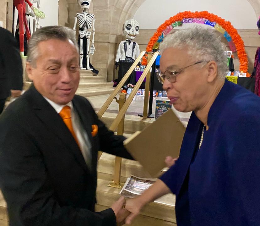 Este viernes 1ro. de noviembre, el Condado de Cook encabezado por su presidenta Toni Preckwinkle y el Comisionado Frank Aguilar, conjuntamente con la Sociedad Cívica Mexicana de Illinois, celebraron el tradicional “Día de Muertos”. “Ya son cuatro años llevando a cabo este bonito programa para celebrar a nuestros muertos. En este 2024 lo hacemos con nuestros amigos de la Sociedad Cívica Mexicana, una organización que por más de 50 años ha velado por el respeto de las tradiciones mexicanas y por qué se mantenga viva en esta nación, nuestra cultura y nuestras costumbres”, dijo el Comisionado Frank Aguilar.