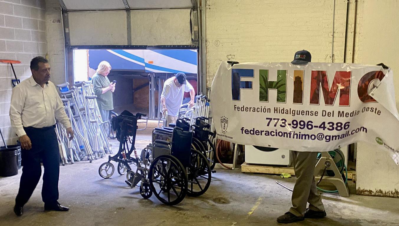 Equipo ortopédico consistente en 160 unidades entre muletas, andadores y sillas de ruedas, fueron enviados por la Federación Hidalguense de Illinois y el Medio Oeste (FHIMO), comandada por el activista proinmigrante Gonzalo Pérez y todo su equipo de voluntarios. “Muy agradecido con todo nuestro equipo de colaboradores y los encargados de contribuir con su trabajo voluntario que concluyó con el envío de este donativo para personas necesitadas, que requieran de muletas, de una andadera, o una silla de ruedas para poder movilizarse y llevar una vida que les permita sentir que, de alguna manera, pueden valerse por sí solos. Esto sin duda levantará su autoestima y contribuirá a que su recuperación sea más rápida”, dijo el activista comunitario Gonzalo Pérez, al Periódico La Prensa.