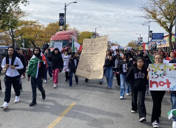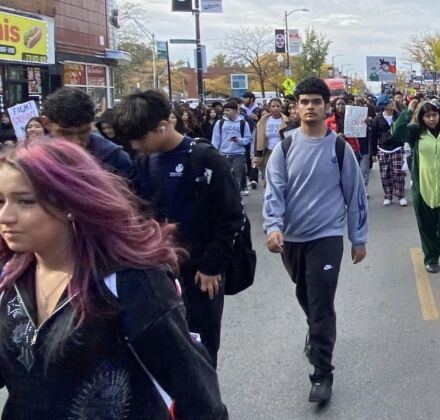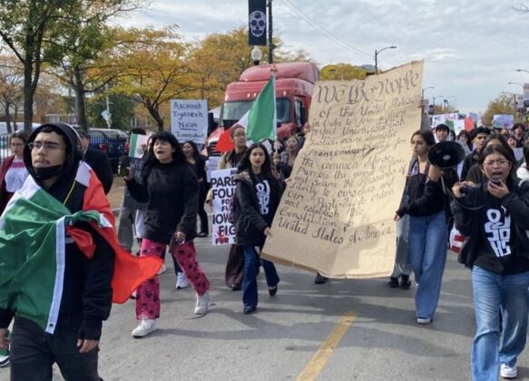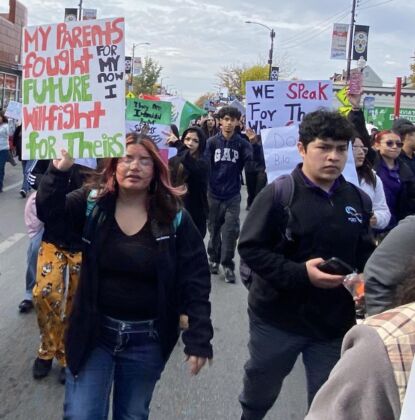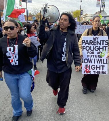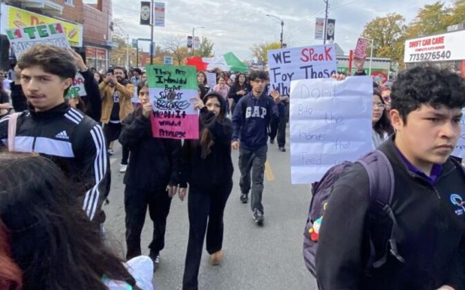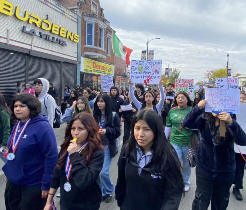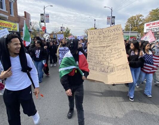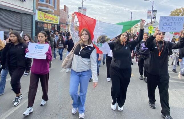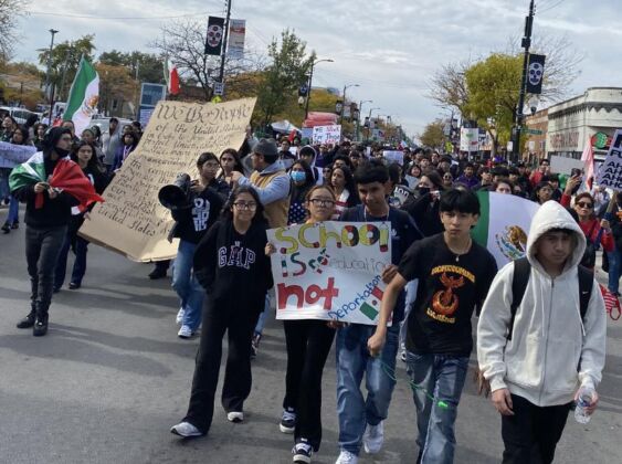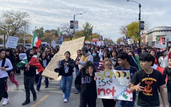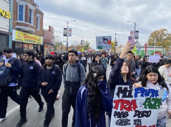 Los jovencitos marcharon por la popular calle 26, al sur de Chicago, pidiendo a gritos que ICE pare de una vez por todas las redadas y las deportaciones. Los muchachos, en su gran mayoría estudiantes y ciudadanos estadounidenses por nacimiento, se manifestaron el martes 28 de octubre, culminando su recorrido bajo el icónico arco de La Villita. “Estamos orgullosos de nuestra sangre” decía uno de muchos carteles que portaron durante la caminata pacífica al sur de la ciudad.