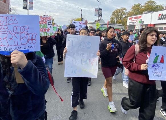 ¡Ningún ser humano es ilegal! era una de las arengas más escuchadas en el recorrido. “En nombre de la comunidad de ‘Little Village’ felicito a nuestros jóvenes por alzar la voz. Por organizarse y luchar por los derechos de sus familias y de sus vecinos. Una y otra vez en el camino nuestros jóvenes fueron distinguidos por su gran valentía. Con ellos, nuestro futuro es brillante”, dijo el Concejal de la Villita, Michael Rodríguez, destacando la significativa acción. “Queremos a nuestras familias unidas. No nos quiten a nuestros padres”, decía otra de las mantas (pancartas) que se exhibieron durante la caminata.