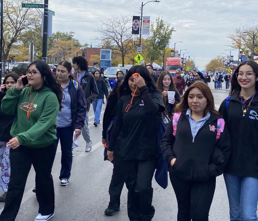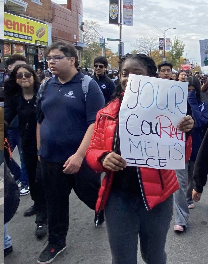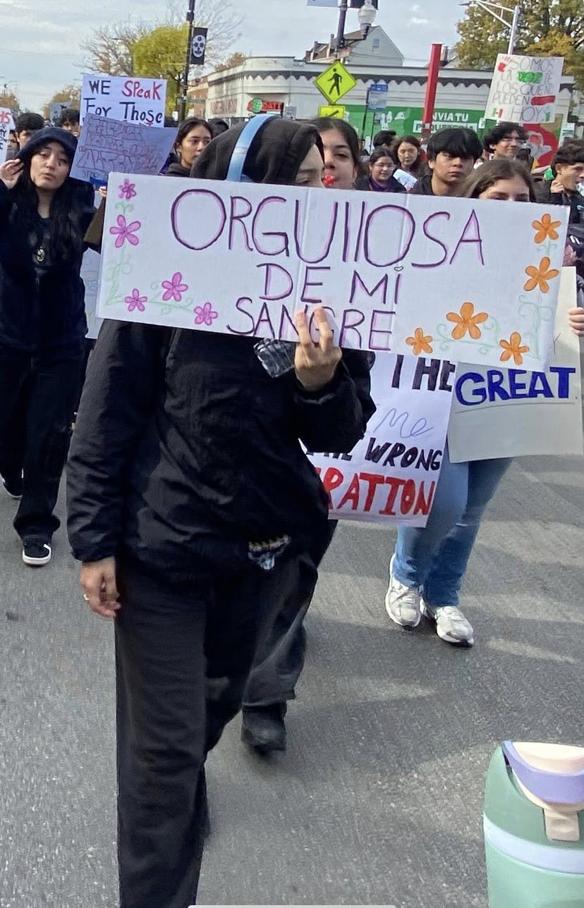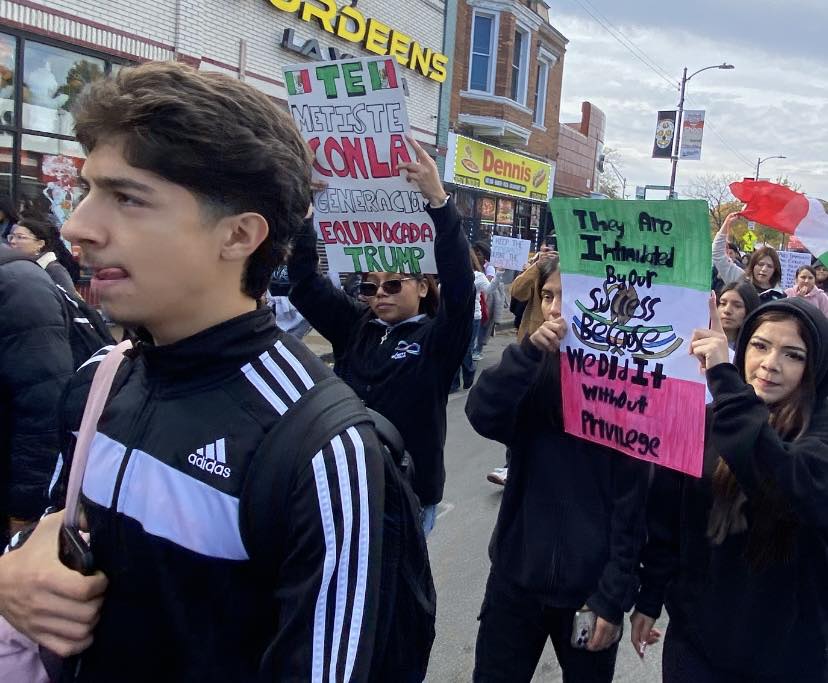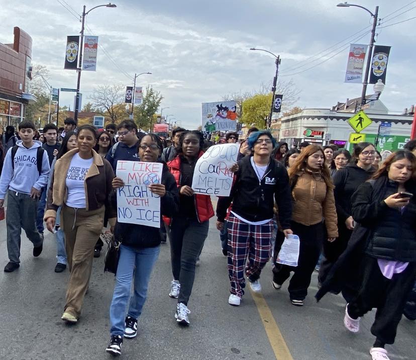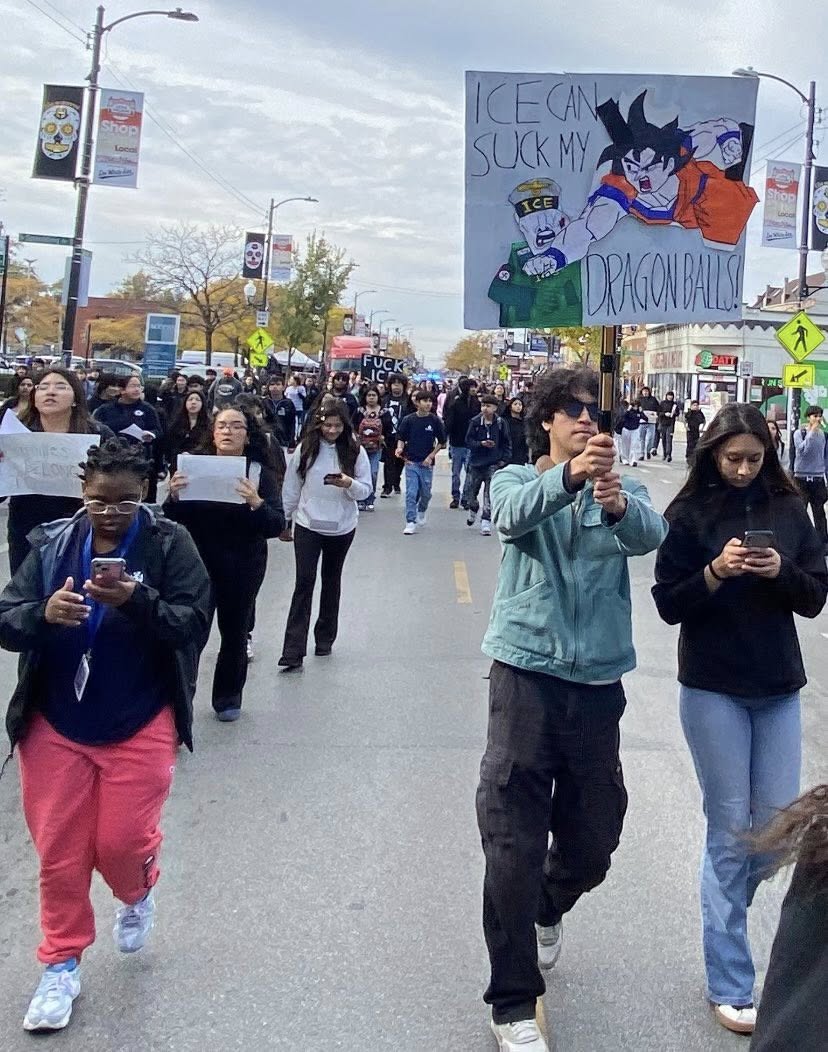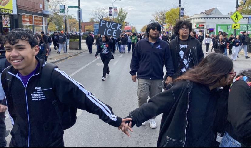 Los jovencitos marcharon por la popular calle 26, al sur de Chicago, pidiendo a gritos que ICE pare de una vez por todas las redadas y las deportaciones. Los muchachos, en su gran mayoría estudiantes y ciudadanos estadounidenses por nacimiento, se manifestaron el martes 28 de octubre, culminando su recorrido bajo el icónico arco de La Villita. “Estamos orgullosos de nuestra sangre” decía uno de muchos carteles que portaron durante la caminata pacífica al sur de la ciudad.