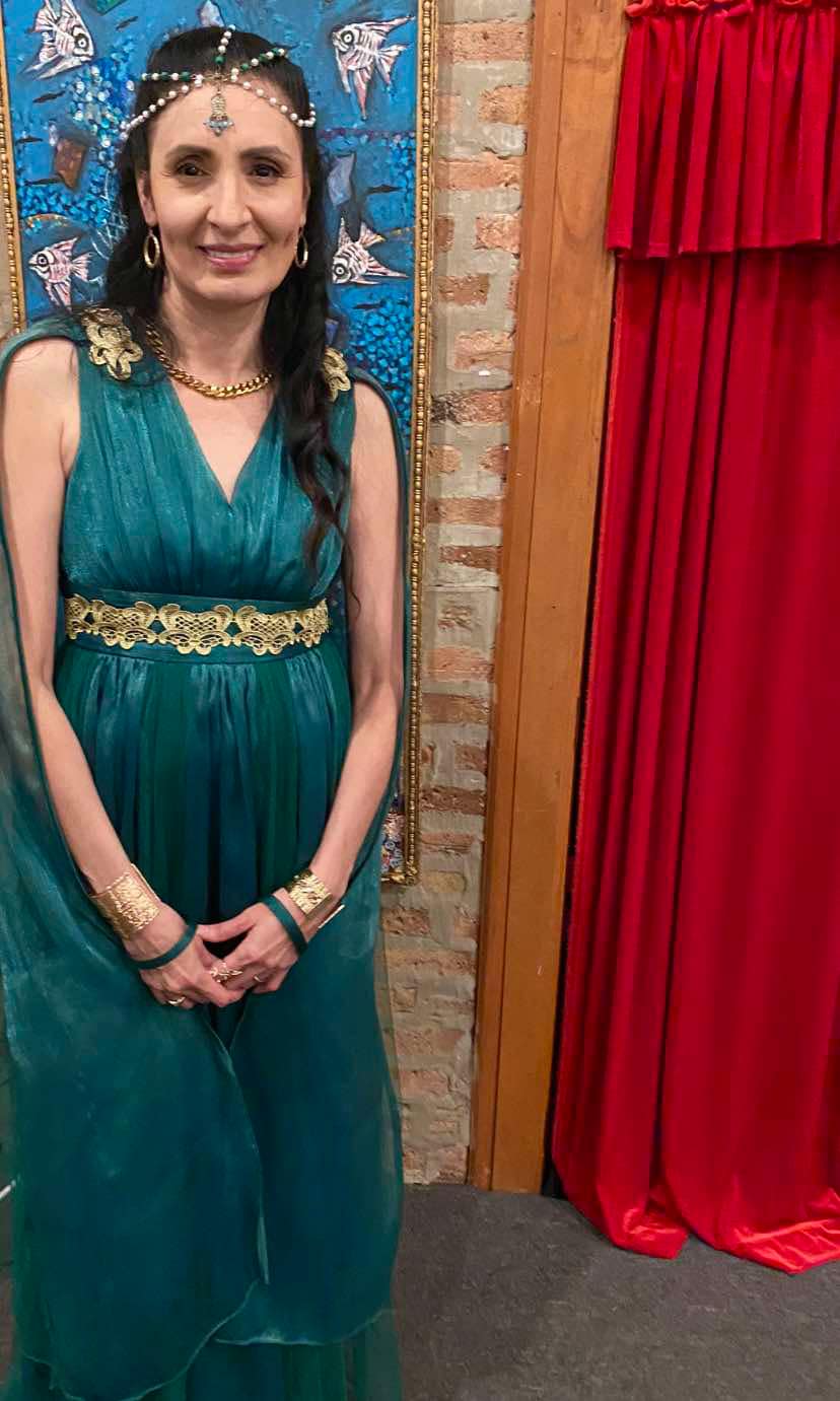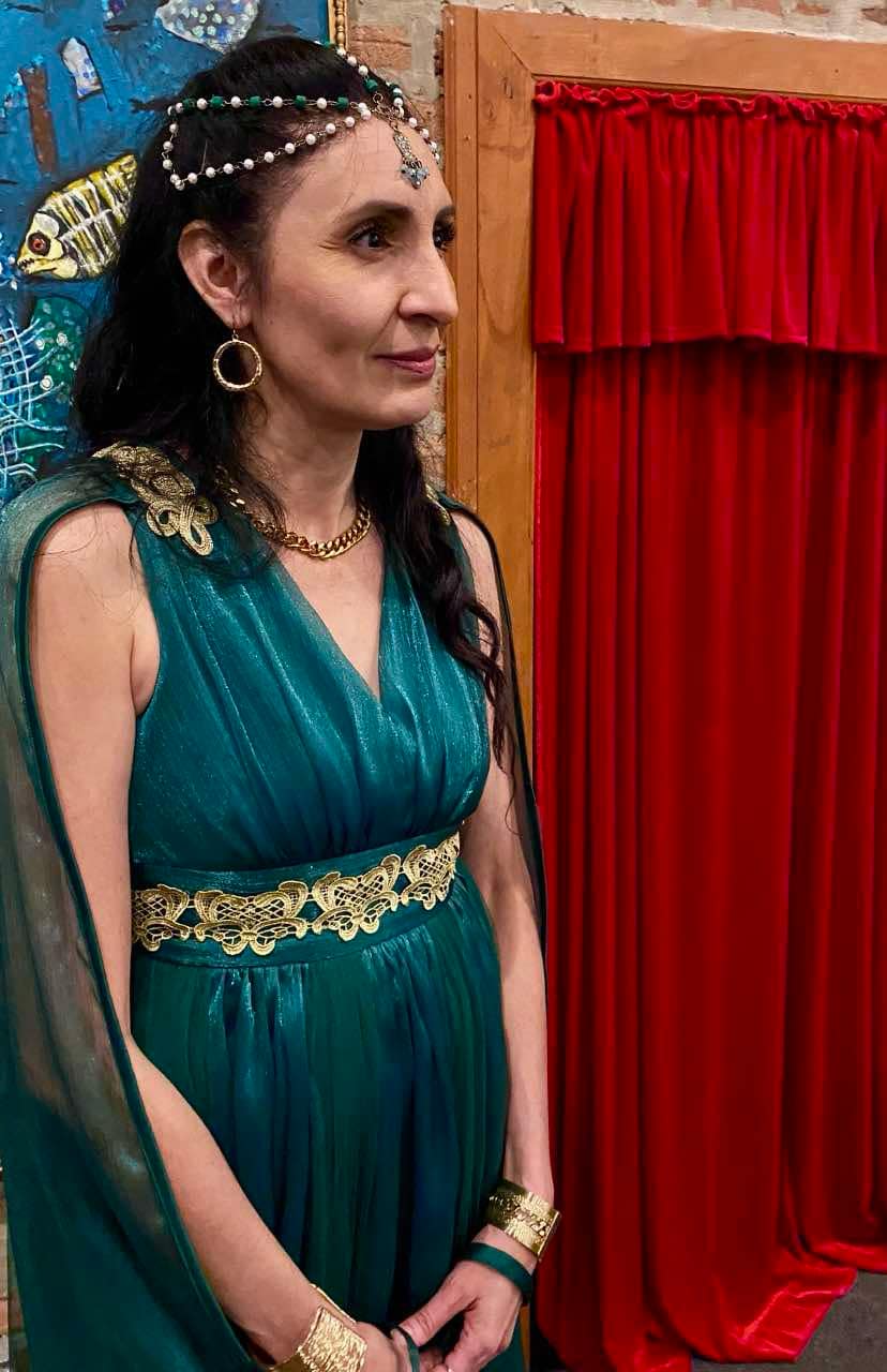 La magia de Roma Díaz, de Sebastián y Jorge Ligarde junto al equipo de utilería y producción hicieron soñar en esta oportunidad a los espectadores, presentando al personaje de Helena de Troya magistralmente representado por la actriz Mafer Roussell, en un ambiente ‘grecotroyano’ que hacía sentir un ambiente como en el mismísimo escenario original de la obra. “La obra original se escribe en el presente en un escenario con una mesa larga llena de botellas de vino y una actriz vistiendo un vestido rojo ajustado con tacones de aguja, lo que nos hace suponer que es Helena de Troya suspendida en el tiempo, pero traída 2 mil años después de Cristo y yo preferí mostrar todo al revés” explicó Sebastián Ligarde. “Me imaginé a Helena en aquella época en Grecia o en Troya, y con un vestido verde para darle contraste al rojo. Conseguimos la utilería griega antigua que son copias de réplicas de museo y lo hicimos lo más parecido a la época iluminada con fuego, veladoras y lámparas de aceite. Esa era la idea de la iluminación”, enfatizó.