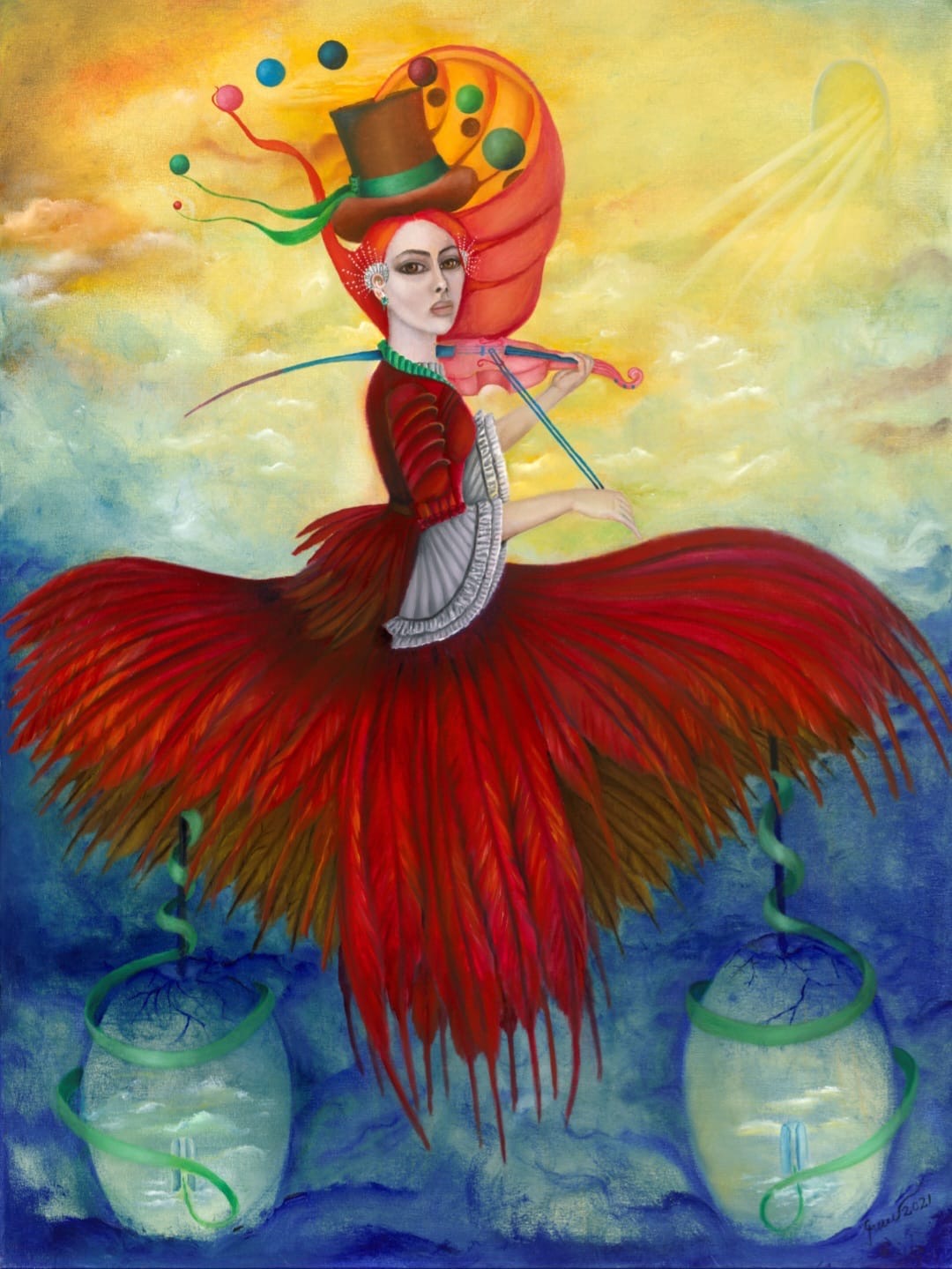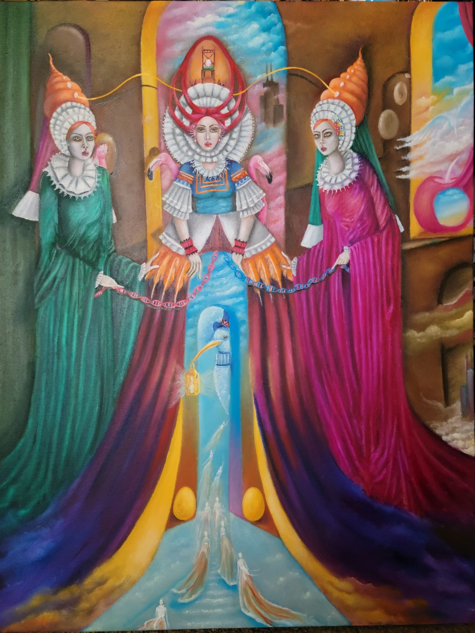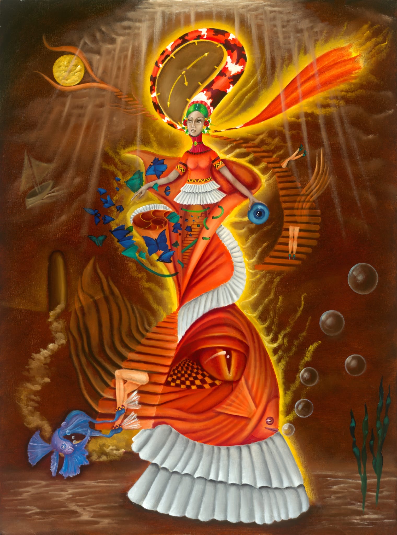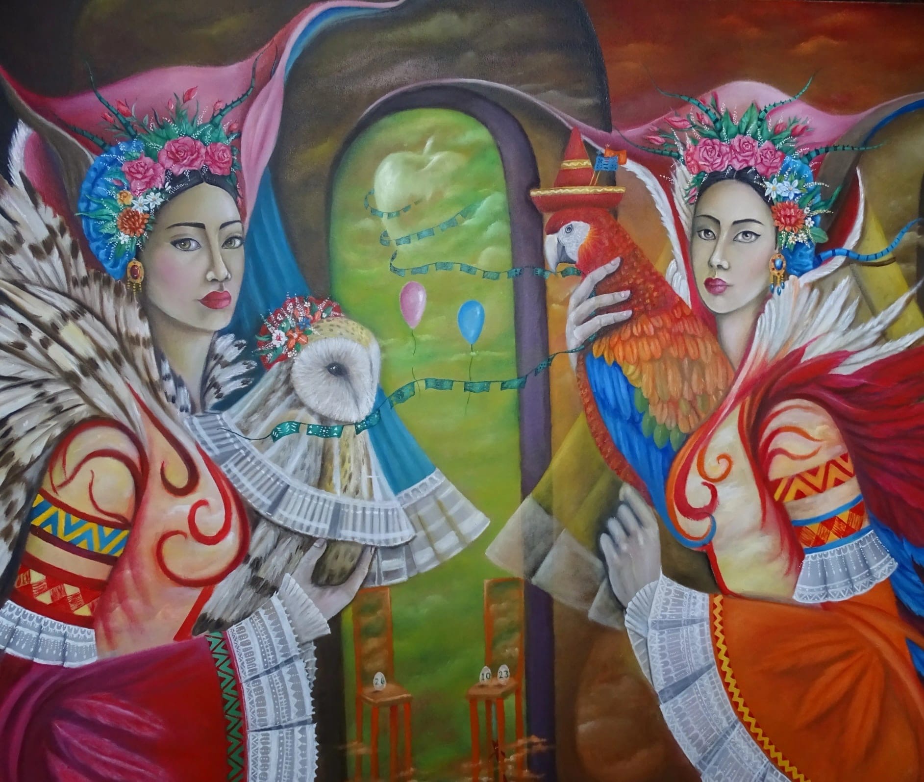 “Los elementos que uso para pintar mis obras, me hacen reflejar a través de ellos. En mis cuadros cuento mis historias. Aunque no son autorretratos, si hacen referencia a algunas de mis vivencias, mis experiencias, mis alegrías y mis tristezas”, dijo Karla Wong. “Las musas son aquellos seres donde nos inspiramos los artistas. Pero en mi caso, son esas musas las que se inspiran en mi. Son como mis ángeles. Mis cuadros son como mis hijos. Aquellos hijos que no voy a tener, pero que me gusta compartirlos con mi público. Voy creándolos, dándoles vida hasta que están listos para salir al mundo. Dan a luz por medio de mis pinceles en mis piezas de arte”, puntualizó.