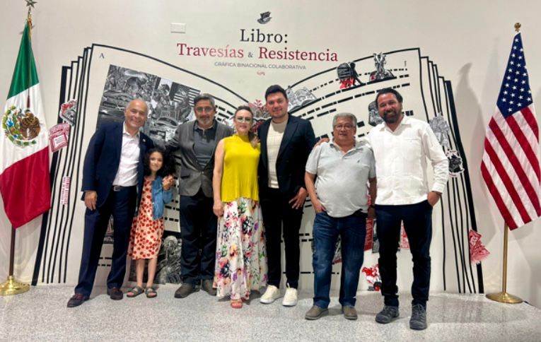 La exposición propone un recorrido visual a través de grabados que exploran las vivencias, desplazamientos, aportaciones culturales y luchas cotidianas de las personas migrantes. Inspirada en el libro como símbolo de memoria y resistencia, la muestra refleja una profunda crítica social a las narrativas de odio y exclusión que afectan a nuestras comunidades binacionales. “Libro: Travesías y Resistencia son huellas profundas con incisiones que se marcan con la tinta, para mostrar realidades del viaje en la vida”, comentó Irma Reyes, reconocida artista y enlace en la ciudad de Uruapan, Michoacán.