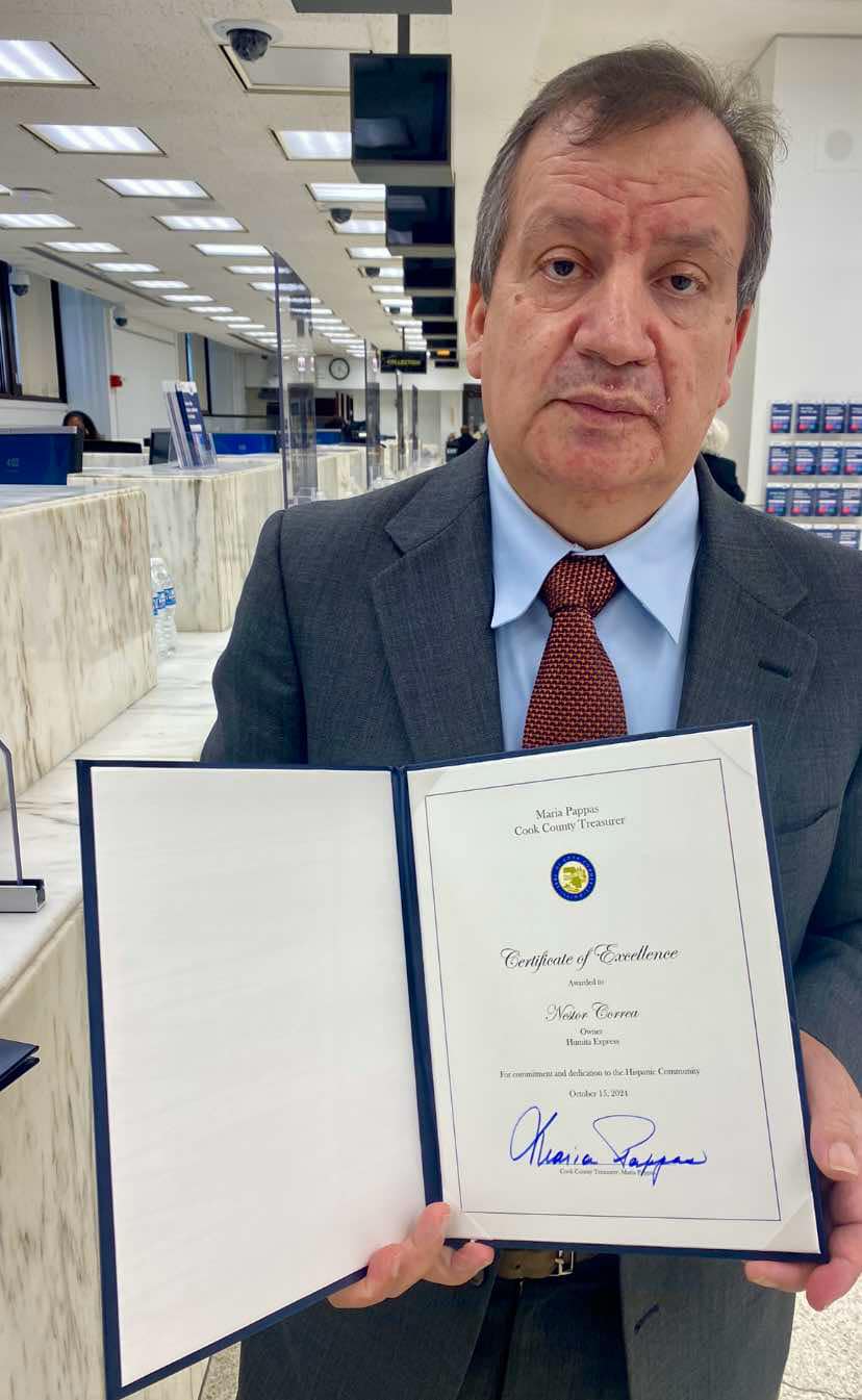 - La ceremonia concluyó con la entrega de Certificados de Reconocimiento por parte de la Tesorería, para importantes líderes de la comunidad migrante como la boliviana Julieta Bolívar, delegada de Zakat Foundation of America; la colombiana Soraya Campos del Restaurante Las Tablas; los restauranteros de origen ecuatoriano Néstor y Ulpiano Correa de La Humita Express; el guatemalteco Eddy Borrayo, Presidente/CEO de Rincón Family Services y Jorge Mújica de origen mexicano, reconocido organizador por los derechos labores en la organización Arise Chicago, entre otros.