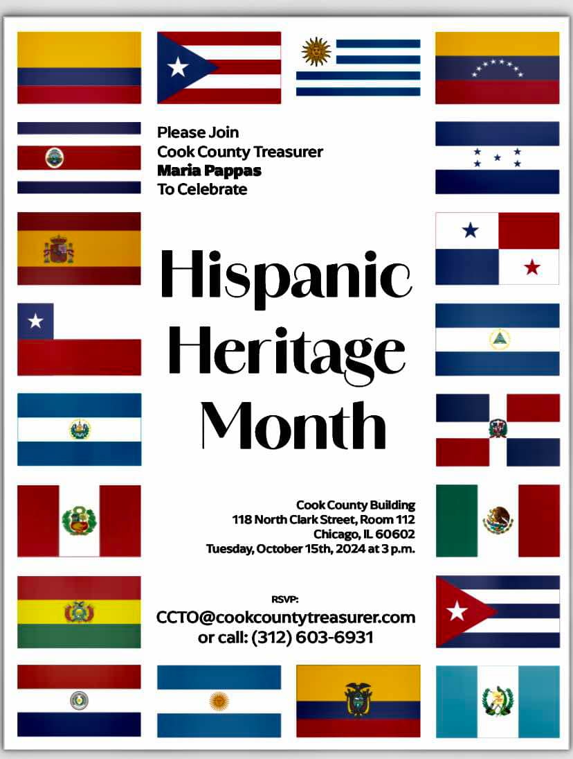 Entre las celebraciones, destacó la que llevaron a cabo funcionarios del Condado de Cook para destacar el “Mes Hispano Latino”, evento comandado por la Tesorera del Condado, María Pappas en el primer piso de sus oficinas ubicadas en el 118 N. Clark, Unit 112, en pleno centro de Chicago. Al acto asistieron personalidades políticas e importantes activistas comunitarios de Illinois, además de destacados líderes que fueron galardonados en el marco de las celebraciones.